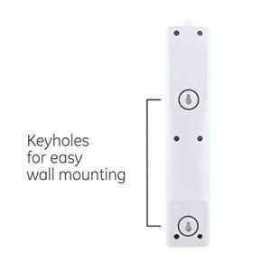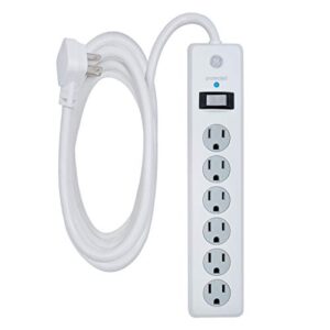 GE 6-Outlet Surge Protector, 10 Ft Extension Cord, Power Strip, 800 Joules, Flat Plug, Twist-to-Close Safety Covers, UL Listed, White, 14092