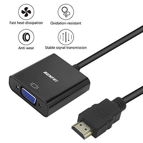 HDMI to VGA, Benfei Gold-Plated HDMI to VGA Adapter (Male to Female) Compatible for Computer, Desktop, Laptop, PC, Monitor, Projector, HDTV, Chromebook, Raspberry Pi, Roku, Xbox and More – Black