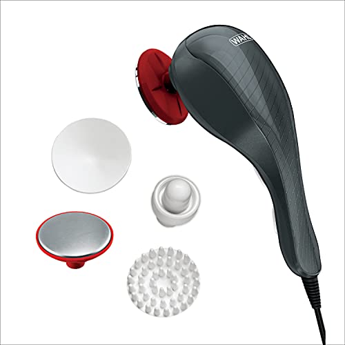 Details: With two speed settings, two heat settings and a lightweight, ergonomic design, the Wahl handheld heat therapy massager allows you to relieve aches and muscle pain in the comfort of your own home. For a customized experience, the massager includes eight separate attachments providing different types of massage, from a light touch for facials to a deep massage using two heat settings. A contoured, multi-grip handle provides a sure grip and easy maneuverability.Enjoy all the benefits this handheld two speed heat therapy body massager has to offer; Enjoy the restorative power of a heat therapy massage in your home & without the pricey spa appointments. Heat disc for soothing aching muscles, Spot application head for pin-point muscle massages, Power disc head for stimulating healthy blood flow, and a Facial attachment head for gentle facial massages.Increased length gives you greater flexibility during usage; treat yourself to a post work out massage or after a stressful day at work. Sleek, long handle for all-over muscle comfort for the back, neck, shoulder, legs, hands, feet, full-body, cellulite, & more; professional quality & therapeutic to release pressure points, promote circulation, reduce inflammation, muscle soreness, stiffness, chronic pain, & fibromyalgia. Adding massage to your pain management for injury recovery or chronic pain can help decrease inflammation, help relieve pain and discomfort, relieve muscle tension, tightness, and stress and help improve your recovery and healing.Product in packaging may not be exactly the same as photo due to continuous improvements to the product.